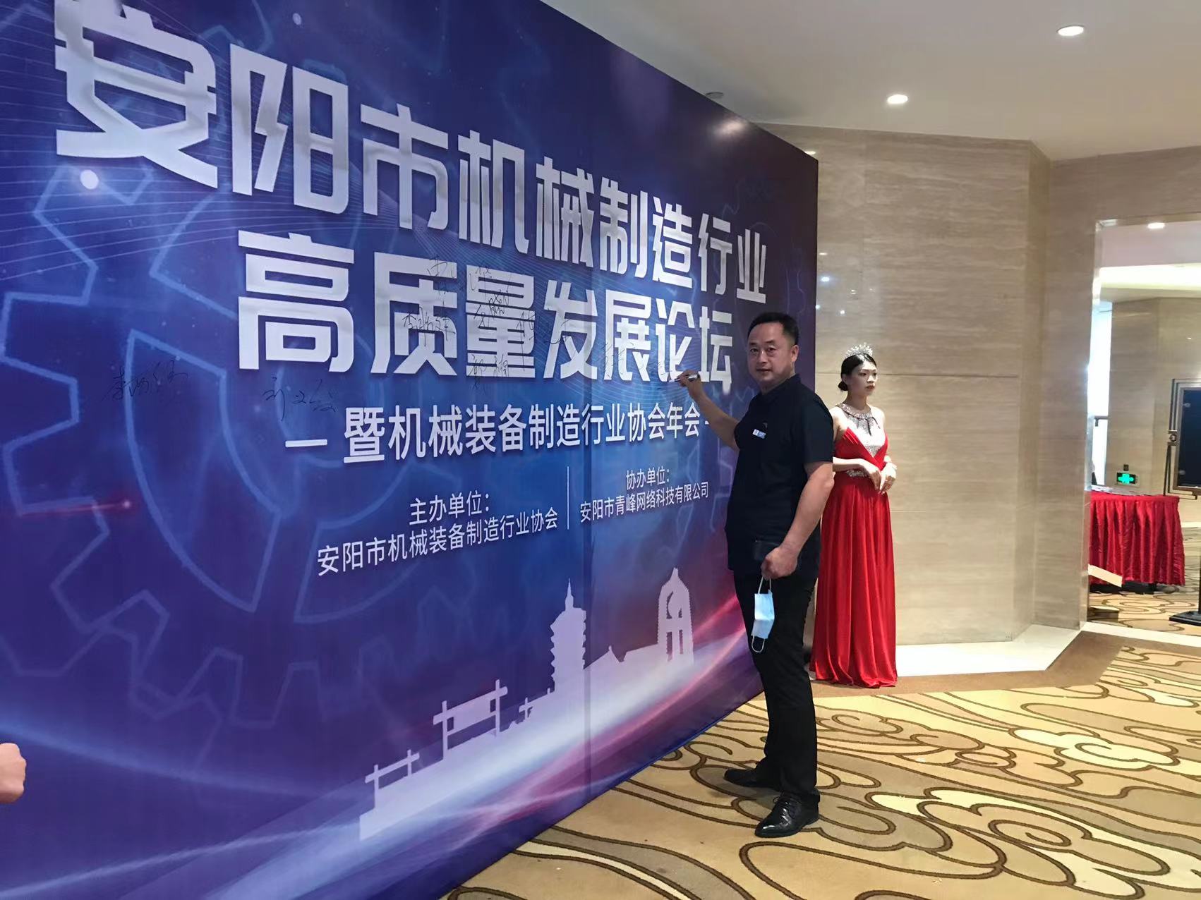 2022年6月30日安陽市機(jī)械裝備制造行業(yè)協(xié)會,第三屆會員大會換屆后的首次年會,在迎賓館隆重召開(三立公司苗總在會議現(xiàn)場簽名)